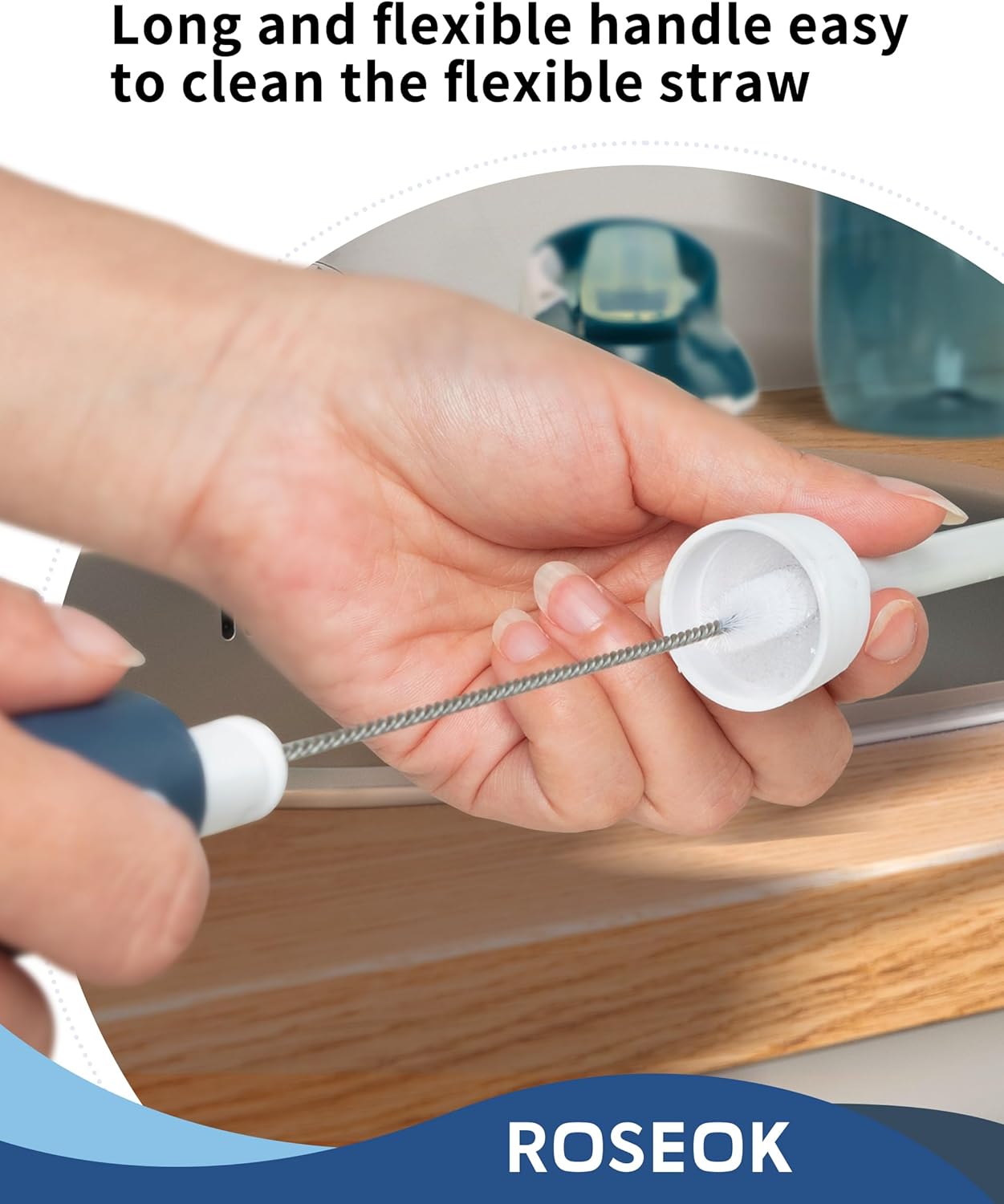 TWO IN ONE: 2 in 1 bottle brush and straw brush designed with a 304 stainless steel straw brush stores in the larger one. Unscrew the end of thermoplastic rubber handle, there’s a 10.1 inch straw brush.The straw brush is long and flexible,so it can be used to clean the straw.