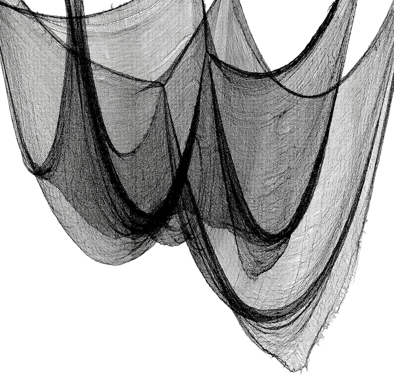 Horror scene: Fabric for Halloween decorations: Creepy, spooky cheesecloth that can be cut and ripped at will. Hang from Windows, curtains, and ceilings to make your house more like a haunted house.