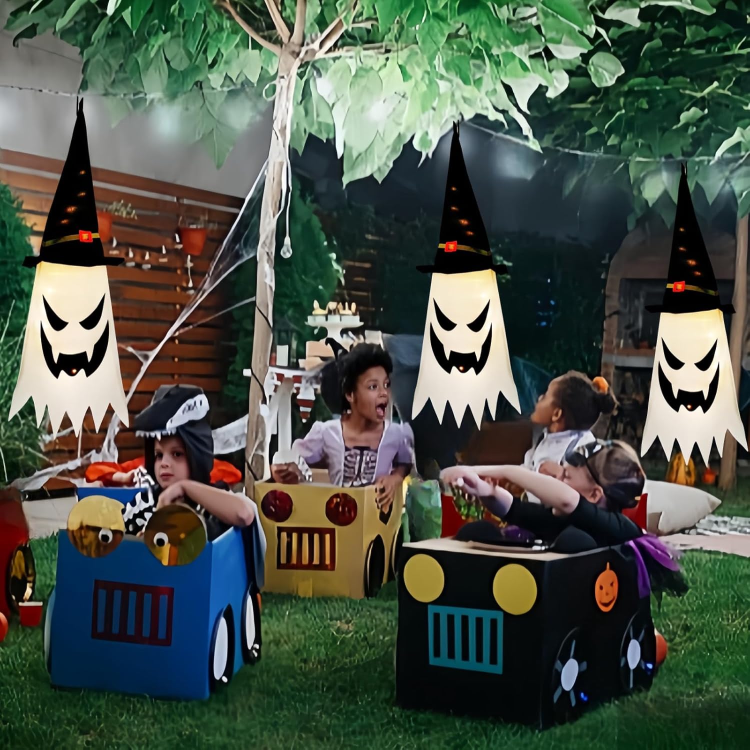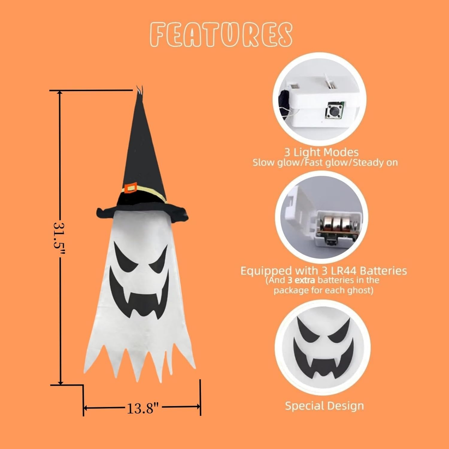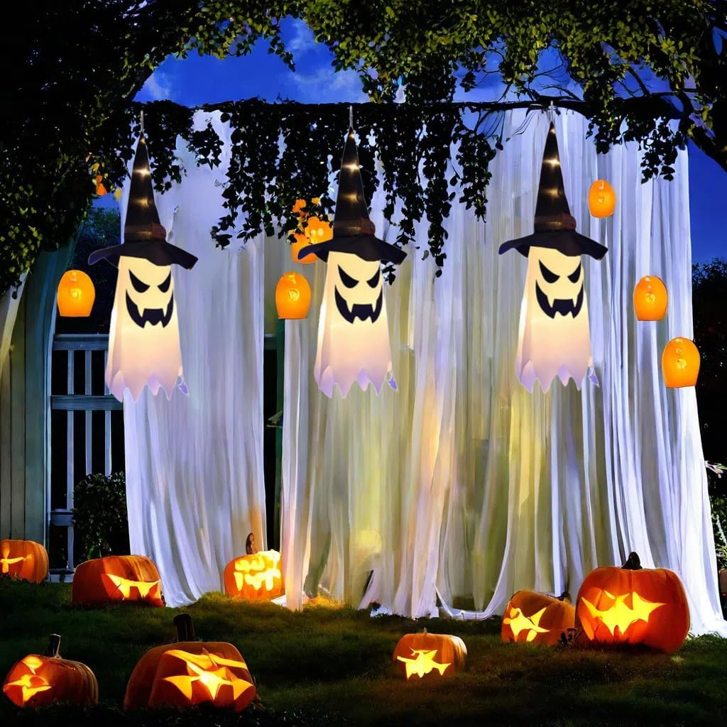 You will receive 3pcs Halloween ghost glowing witch hat lights, you can hang witch hat ghost lights to decorate your indoor party for a spooky festive atmosphere.