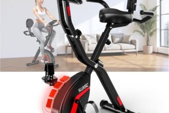 Folding Exercise Bike, SLUNSE 5 IN 1 Foldable Stationary Bike for Home, Indoor Cycling Bike with 16 Level Adjustable Magnetic Resistance, 350LBS Weight Capacity, Soft Seat Backrest For Fitness Workout