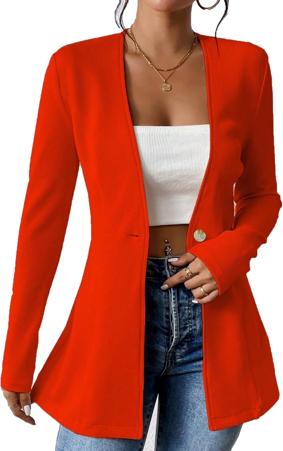 ★ Classic Design: Basic blazer jacket for women, a single front gold button, shawl collar, solid color/plain