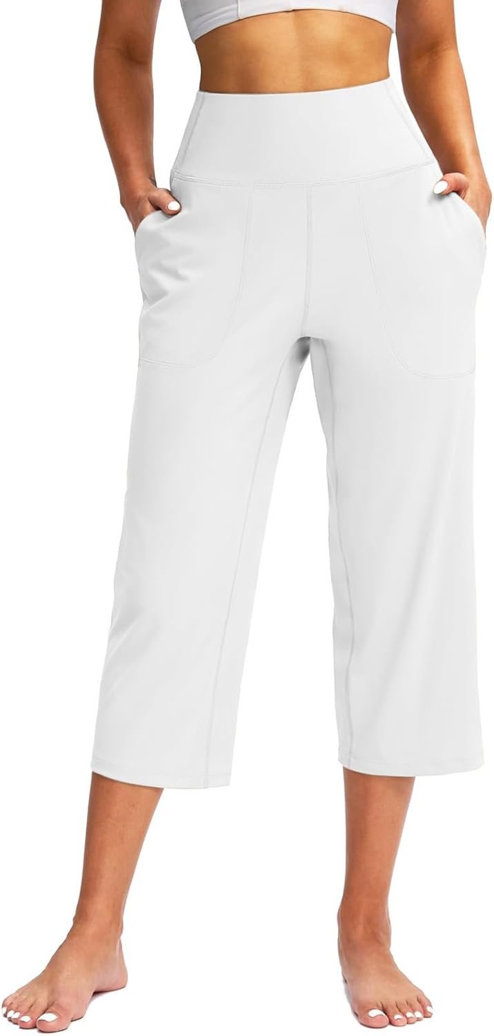 Capri Pants for Women Summer Casual Elastic Waist Wide Leg Cropped Trousers with Pockets Plus Size Tummy Control Yoga Capris