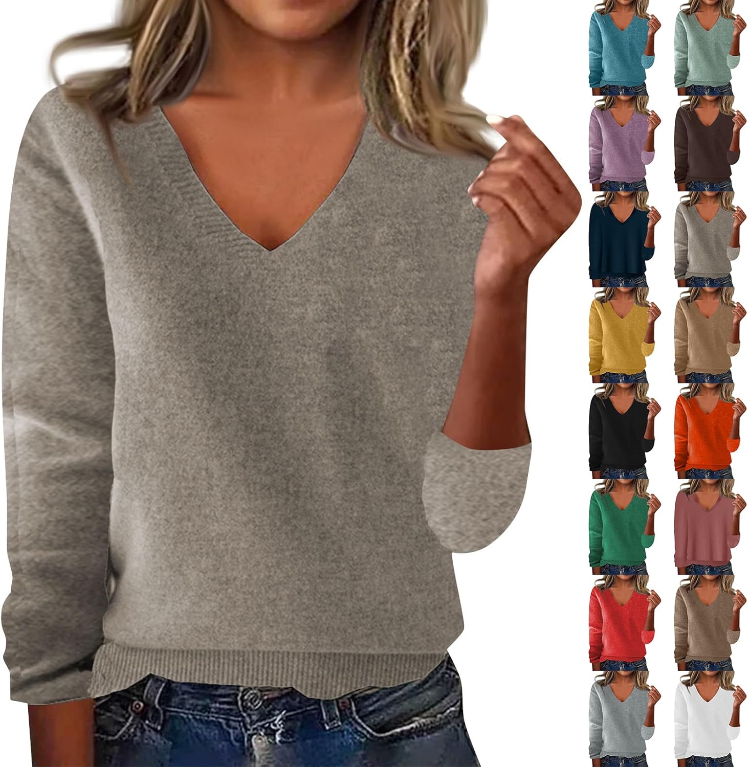 Women’s Fall Cashmere V-Neck Sweater: Lightweight Dressy Casual Knit Pullover