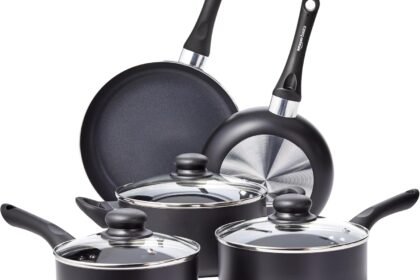 Price: (as of – Details) An Amazon Brand. NONSTICK COATING: This nonstick pots and pans set allows food to slide off effortlessly without stickingCOMFORTABLE SOFT-TOUCH HANDLES: This pot and pan...