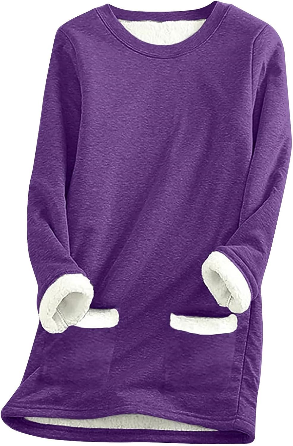 Ceboyel Womens Fleece Pullover Sweatshirt No Hood Shirts Sweater Sherpa Lined Tunic Sweatshirts Warm Winter Loungewear 2023