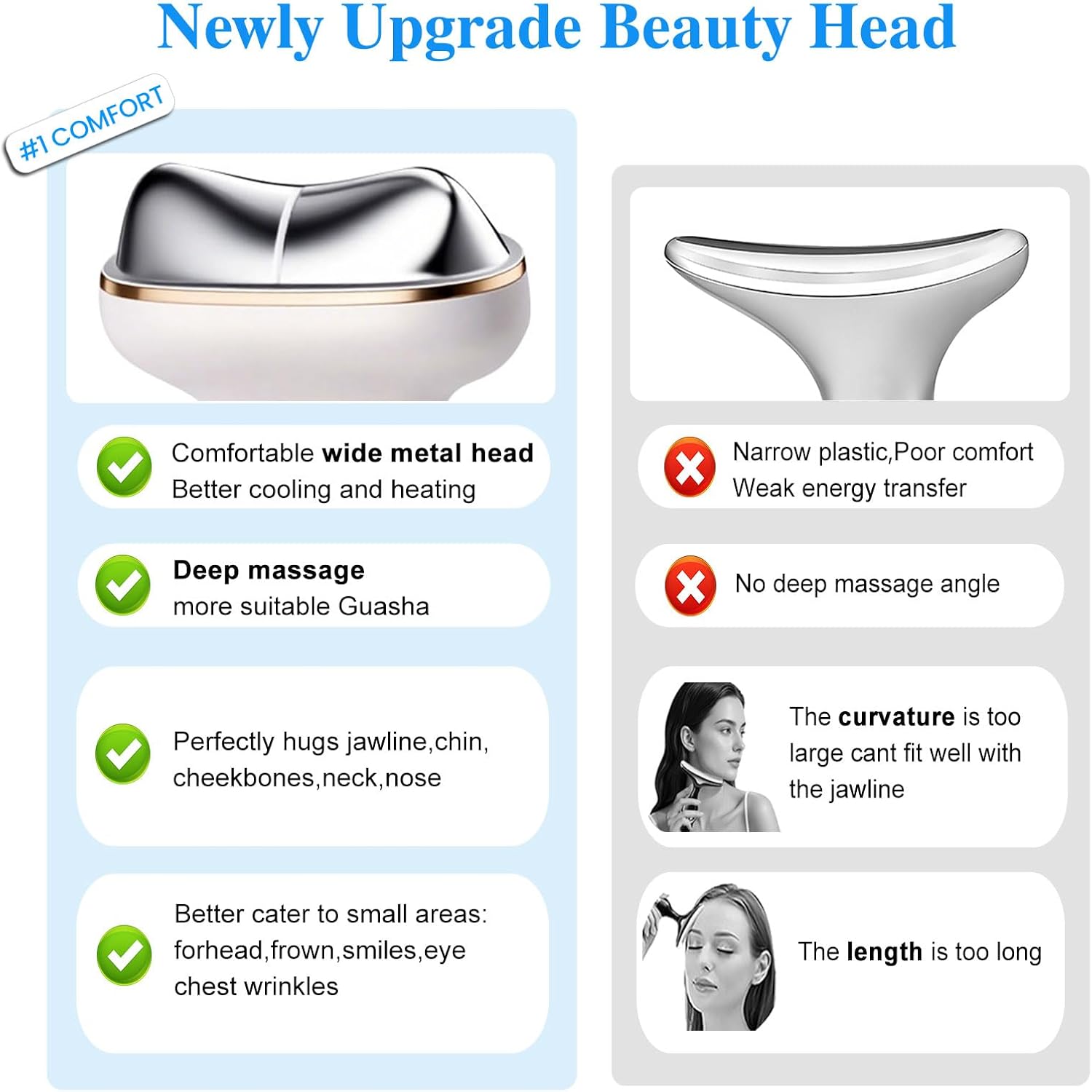 【Contour-Hugging Metal Head】Unlike flat or plastic face and neck massagers, our upgraded curved metal gua sha head precisely hugs the contours of your face, jawline, neck, and chest,for superior facial neck lifting firming and V-line sculpting.High conductivity metal brings an immersive and comfortable heated scraping experience.