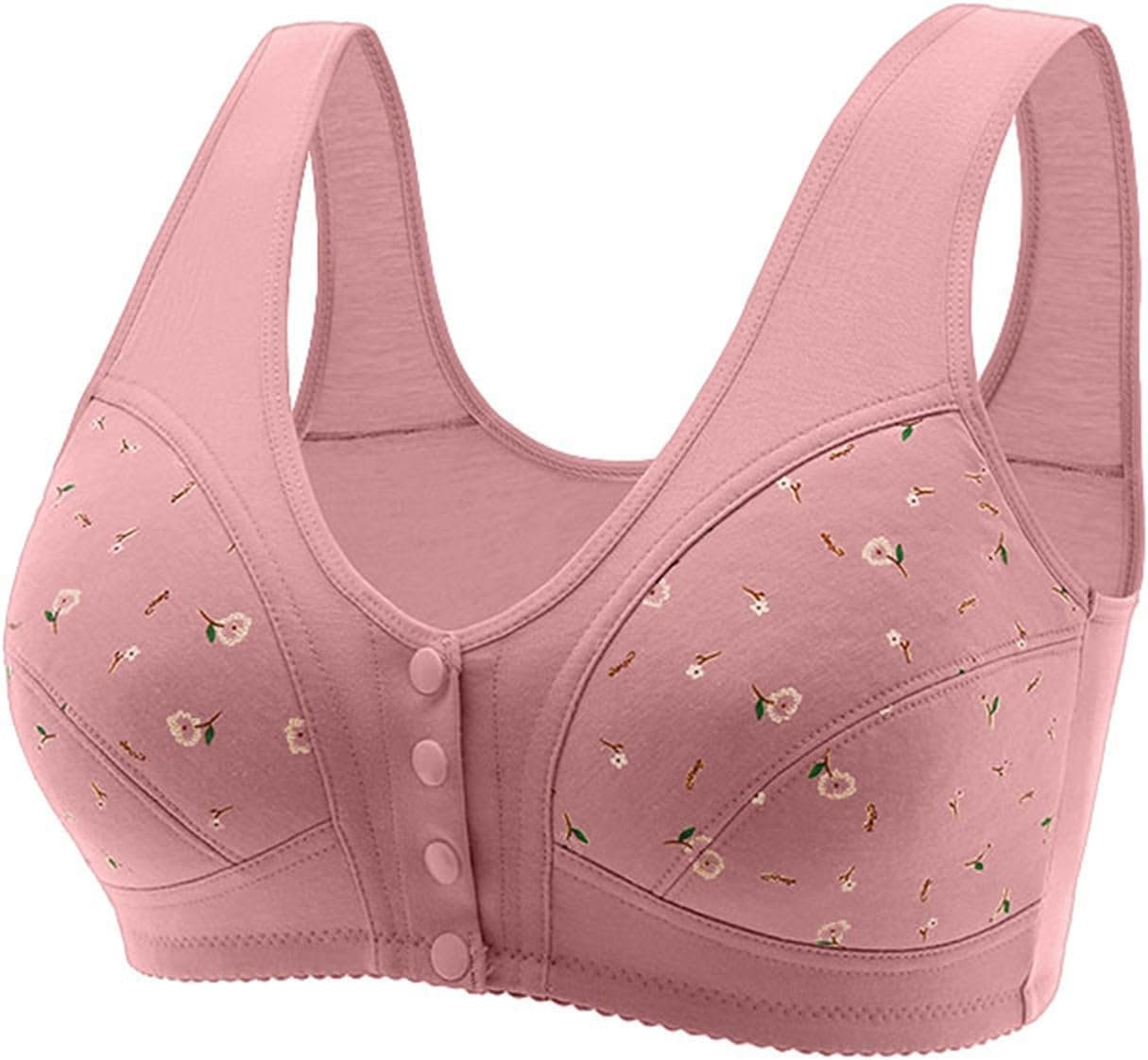 Daisy Bras for Older Women Front Closure Convenient Everyday Bras Mid Buttons Comfortable No Underwire Gathering Bras