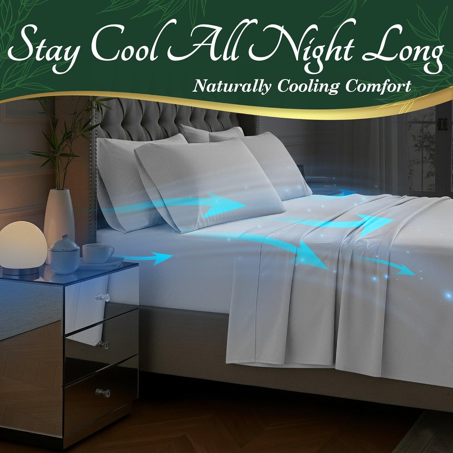 SLEEP IN COOLING BLISS: Elevate your sleep with viscose derived from bamboo cooling sheets. Naturally temperature regulating bed sheet set, moisture-wicking, and innovative Breezweave technology for breathability. Luxury sheets for ultimate relaxation