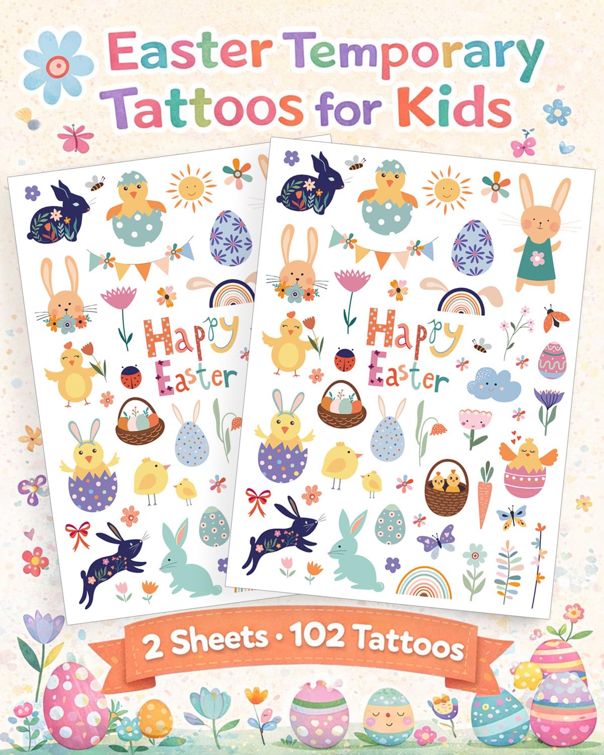 Price: $3.99(as of Mar 12, 2026 04:59:18 UTC – Details) Product description How to Remove: · Apply rubbing alcohol, baby oil, or makeup remover to the tattoo. · Let it soak for a few minutes, then gently wipe away. Explore More Themes from ERSHIXUN Add to Cart Add to Cart Add to Cart Add to Cart Add to Cart Add to Cart Price $3.99$3.99 $2.99$2.99 $7.99$7.99 $2.99$2.99 $7.99$7.99 $9.99$9.99 Party favors ✔ ✔ ✔ ✔ ✔ ✔ Goodie Bag Stuffers ✔ ✔ ✔ ✔ ✔ ✔ Waterproof ✔ ✔ ✔ ✔ ✔ ✔ Gifts ✔ ✔ ✔ ✔ ✔ ✔ Theme ✔ ✔ ✔ ✔ ✔ ✔ Package Dimensions : 8.27 x 5.95 x 0.16 inches; 0.63 ounces UPC : 640486444624 Manufacturer : ERSHIXUN ASIN : B0GKXGYX9Q Best Sellers Rank: #58,312 in Beauty & Personal Care (See Top 100 in Beauty & Personal Care) #647 in Temporary Tattoos Customer Reviews: 5.0 5.0 out of 5 stars (3) var dpAcrHasRegisteredArcLinkClickAction; P.when(‘A’, ‘ready’).execute(function(A) { if (dpAcrHasRegisteredArcLinkClickAction !== true) { dpAcrHasRegisteredArcLinkClickAction = true; A.declarative( ‘acrLink-click-metrics’, ‘click’, { “allowLinkDefault”: true }, function (event) { if (window.ue) { ue.count(“acrLinkClickCount”, (ue.count(“acrLinkClickCount”) || 0) + 1); } } ); } }); P.when(‘A’, ‘cf’).execute(function(A) { A.declarative(‘acrStarsLink-click-metrics’, ‘click’, { “allowLinkDefault” : true }, function(event){ if(window.ue) { ue.count(“acrStarsLinkWithPopoverClickCount”, (ue.count(“acrStarsLinkWithPopoverClickCount”) || 0) + 1); } }); }); 102 Cute Easter Designs Kids Love: Packed with bunnies, eggs, chicks, carrots, and spring icons—perfect Easter tattoos for kids, great for parties, egg hunts, classroom prizes & everyday play.2 Large Sheets (8.26″ x 6″) – Super Value Pack: Includes 102 bright Easter tattoos with larger, easy-to-see artwork—perfect for sharing in classrooms & parties.Perfect for Baskets, Eggs & Parties: Use as Easter basket stuffers, Easter egg fillers, and Easter party favors—great for baskets, goodie bags, classroom prizes, egg hunt rewards, and more.Safe, Non-Toxic & Waterproof: Made with skin-friendly materials for reliable use. These kid tattoos temporary designs stay on through hand washing and active play—lasts 2–3 days*Quick & Easy to Apply (4 Steps): Apply these Easter temporary tattoos in seconds—peel film, place, press with a wet paper towel for 20 seconds, then peel paper to reveal. Removes easily—no mess, perfect for parties and everyday fun. *Varies by skin type & activity. Post navigation Neutrogena Hydro Boost Water Gel, Hyaluronic Acid Facial Moisturizer for Normal to Oily Skin, Hydrating Face Moisturizer, 1.7 fl. oz + Trial Size Hydro Boost Facial Cleanser, 0.5 fl. oz Sweatshirt for Women Color Block Crewneck Long Sleeve Sweatshirts Casual Loose Pullover Fall Fashion Outfits Pockets