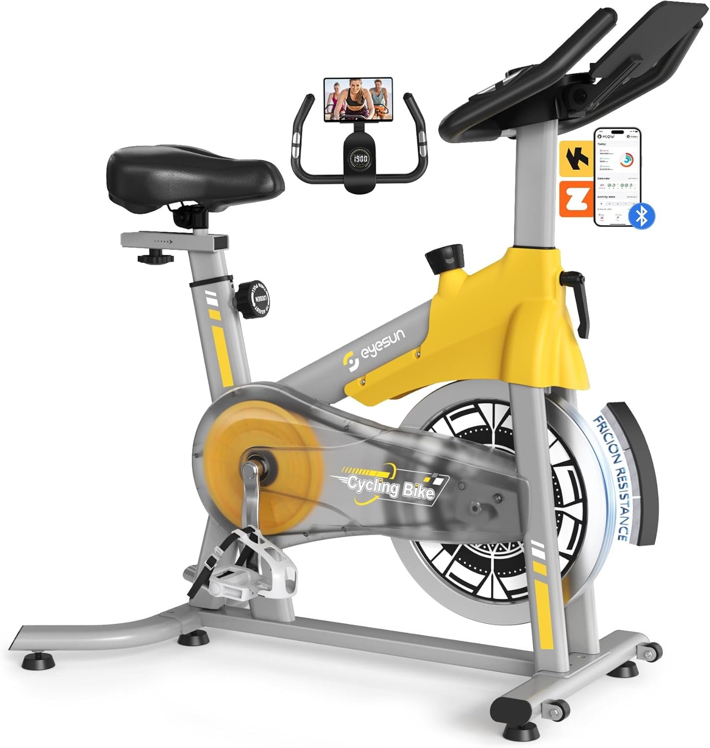 Safe & Convenient to Use: Built for stability and safety even during intense workouts, the EYESUN exercise bikes for home supports up to 300 lbs. The resistance bar lets you stop the flywheel instantly for added safety, while the convenient adjustable knob allows you to customize resistance levels to suit your training goals. Thoughtful features like a monitor holder for your tablet or phone, a water bottle holder, and built-in transport wheels make your workout experience smooth and hassle-free.