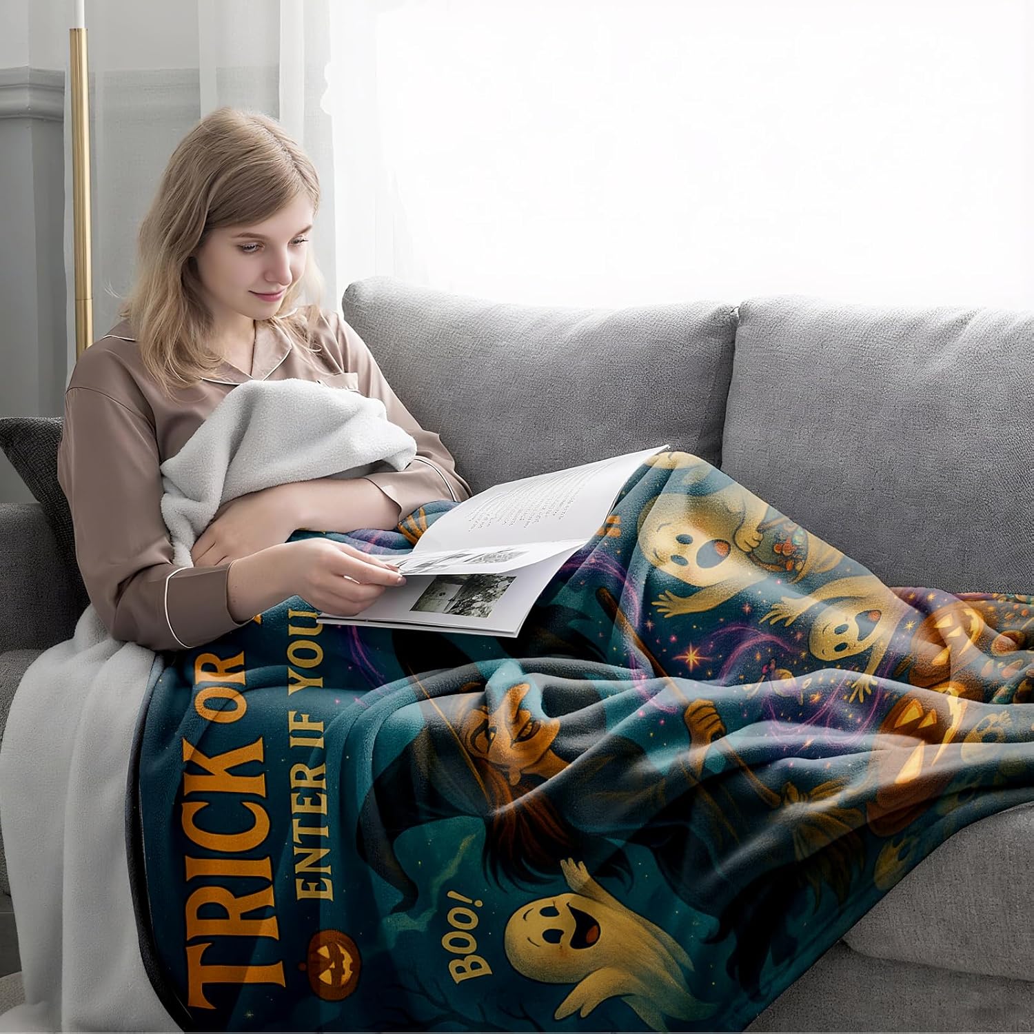 Elevate Your Halloween Experience With Our Charming And Cozy Halloween-Themed Throw Blanket. Featuring Unique, Delightful Designs Including Cheerful Witches, Friendly Ghosts, Glowing Pumpkins, And A Spooky Haunted House, This Blanket Adds A Playful Yet Sophisticated Touch To Your Holiday Decor. Sized At 60″X50″, It’S Perfect For Snuggling Up On Chilly Nights Or Accentuating Your Couch, Bed, Or Favorite Armchair. Crafted With Soft, Luxurious Flannel Fleece, Our Blanket Offers Unmatched Warmth And Comfort. Its Durable, Easy-Care Material Ensures Vibrant Patterns And Colors Will Last Through Countless Halloween Seasons. Ideal For Personal Use Or As A Thoughtful Gift, This Spooky-Fun Throw Blanket Will Become A Cherished Part Of Your Halloween Traditions For Years To Come.