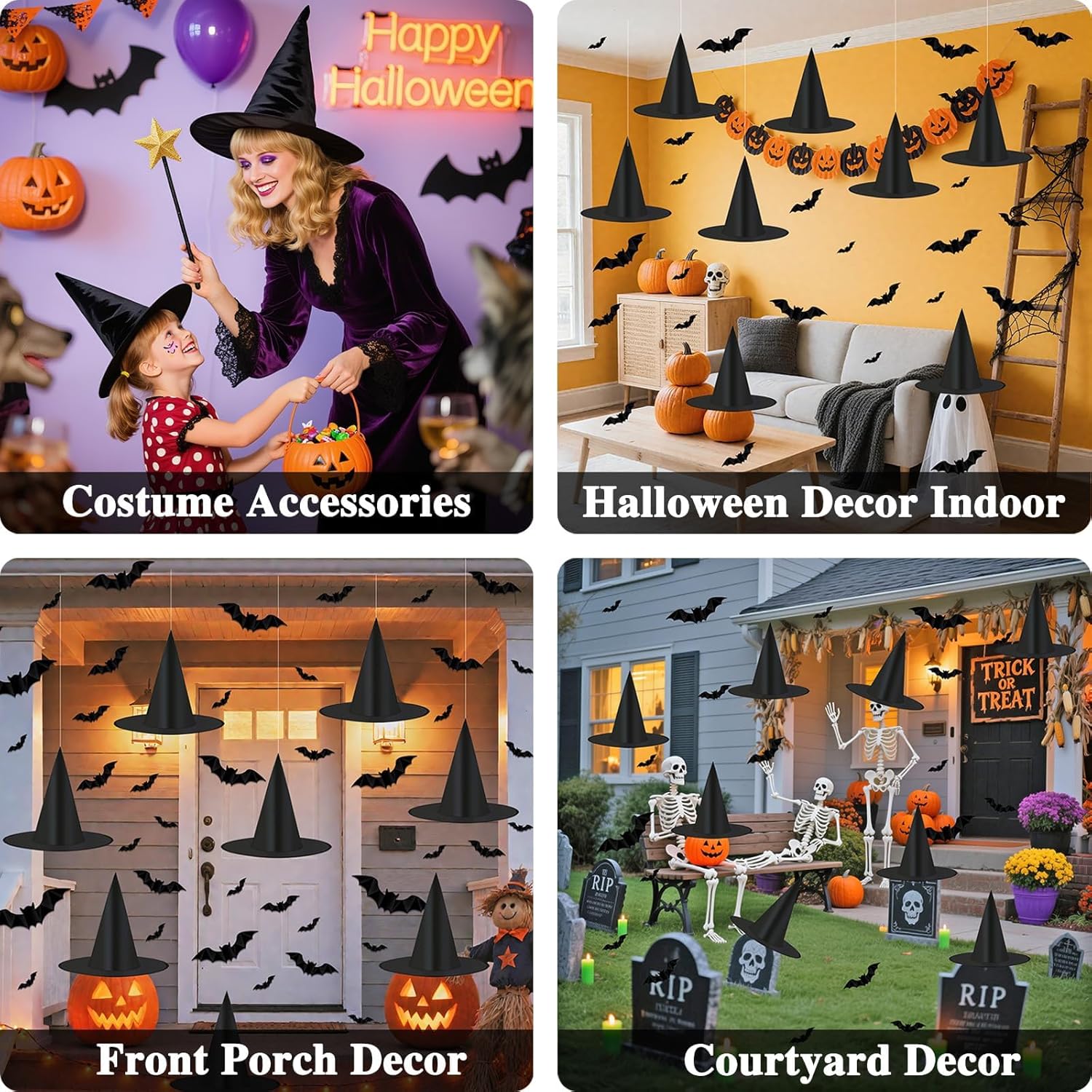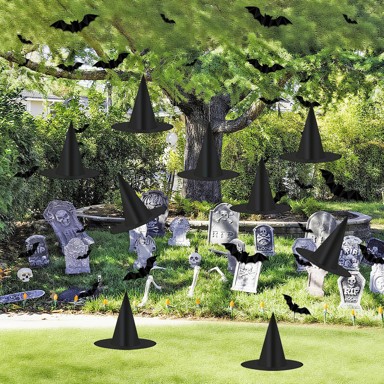 Customers find these Halloween decorations to be of great quality and value for money, noting they look as good as new and hold up well through rain and wind. They are particularly effective for decorating front porches, and one customer mentions they can be hung using fishing line and 3M hooks. The size receives mixed feedback, with several customers finding them super small.