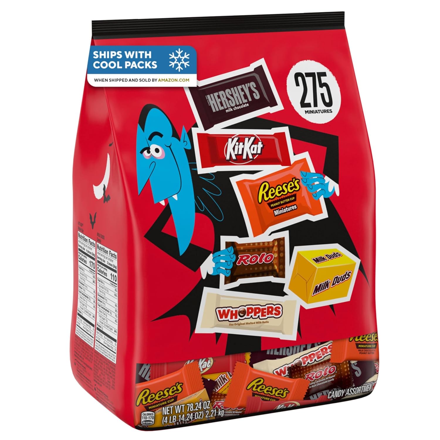 Contains one (1) 78.24-ounce, 275-piece bulk variety bag of Hershey Assorted Flavored Miniatures Candy
