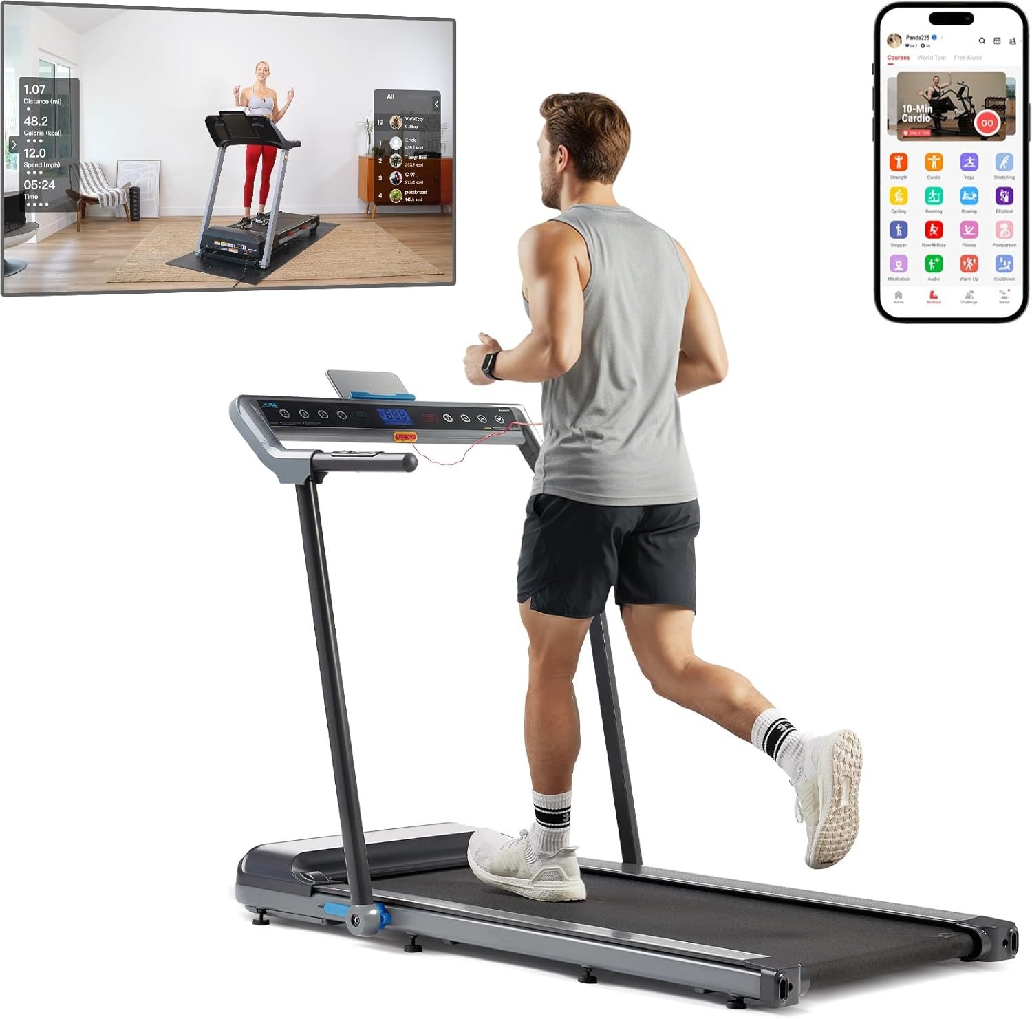 【20″ EXTRA-WIDE RUNNING BELT】The spacious 20″ x 50″ deck gives you plenty of room for a natural stride—walk, jog, or run comfortably with freedom to move. Enjoy everything from a relaxing stroll to a brisk jog, all from the comfort of your living room.