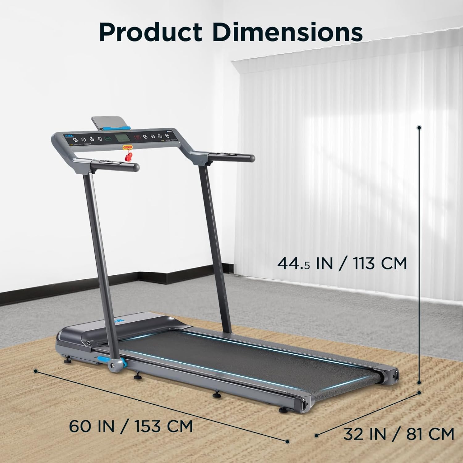 【COMPACT, FOLDABLE DESIGN】Fold up the treadmill in seconds for easy, space-saving storage. Built-in wheels make it simple to roll under a bed or into a closet. Perfect for apartments, home offices, or any small space—this treadmill is your go-to fitness solution.