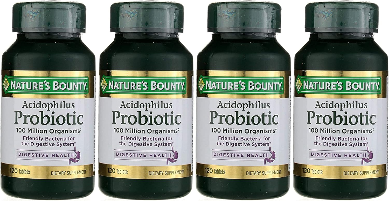 Price: $42.68 - $30.90(as of Feb 21, 2026 17:41:57 UTC – Details) Nature’s Bounty Acidophilus Probiotic provides friendly bacteria for the digestive system for overall well-being. (1) The supplement contains over 100 million active Lactobacillus Acidophilus cultures guaranteed through expiration. To provide your body with friendly bacteria, adults can take one tablet daily, preferably with a meal. (1) Nature’s Bounty Acidophilus Probiotic is gluten free, dairy free, wheat free, suitable for vegetarians, and contains no sodium, artificial flavors, or sweeteners. Each pack of one includes 120 tablets. (1) These statements have not been evaluated by the Food and Drug Administration. This product is not intended to diagnose, treat, cure or prevent any disease. Is Discontinued By Manufacturer : No Product Dimensions : 8 x 4 x 2.1 inches; 0.01 ounces Item model number : 82610 Date First Available : October 9, 2008 Manufacturer : Nature’s Bounty ASIN : B001G7QRZS Best Sellers Rank: #96,672 in Health & Household (See Top 100 in Health & Household) #430 in Acidophilus Nutritional Supplements Customer Reviews: 4.7 4.7 out of 5 stars (602) var dpAcrHasRegisteredArcLinkClickAction; P.when(‘A’, ‘ready’).execute(function(A) { if (dpAcrHasRegisteredArcLinkClickAction !== true) { dpAcrHasRegisteredArcLinkClickAction = true; A.declarative( ‘acrLink-click-metrics’, ‘click’, { “allowLinkDefault”: true }, function (event) { if (window.ue) { ue.count(“acrLinkClickCount”, (ue.count(“acrLinkClickCount”) || 0) + 1); } } ); } }); P.when(‘A’, ‘cf’).execute(function(A) { A.declarative(‘acrStarsLink-click-metrics’, ‘click’, { “allowLinkDefault” : true }, function(event){ if(window.ue) { ue.count(“acrStarsLinkWithPopoverClickCount”, (ue.count(“acrStarsLinkWithPopoverClickCount”) || 0) + 1); } }); }); 100 MILLION LACTOBACILLUS. Acidophilus is a friendly bacteria for the digestive system. Nature’s Bounty Probiotic Acidophilus contains over 100 million active Lactobacillus Acidophilus (including the naturally occurring metabolic product produced by Lactobacilli) at the time of manufacture.HEALTHY INGREDIENTS. No Artificial Color, No Artificial Flavor, No Artificial Sweetener, No Preservatives, No Sugar, No Starch, No Milk, No Lactose, No Soy, No Gluten, No Wheat, No Fish. Sodium Free. Post navigation One A Day Multivitamin for Women- Daily Vitamins for Woman with Biotin, Calcium, Folic Acid, Iron & Zinc, Complete Women’s Vitamins, 200 Ct (Packaging May Vary) Amazon Elements Omega 3-6-9 Complex of Fish, Flaxseed and Borage Oil – EPA & DHA Omega-3 fatty acids – 60 Softgels, 2 Month Supply