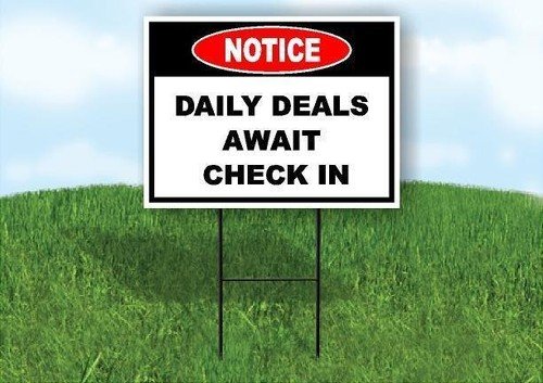 Notice Daily Deals Await Check In 18 in x24 in Yard Road Sign w/ Stand