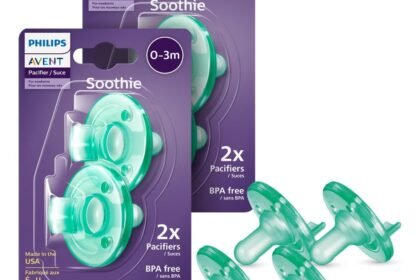 Price: (as of – Details) Philips Avent Soothie one-piece newborn pacifiers are specially sized and shaped for babies 0-3 months old and adhere to the American Academy of Pediatrics guidelines¹. ...