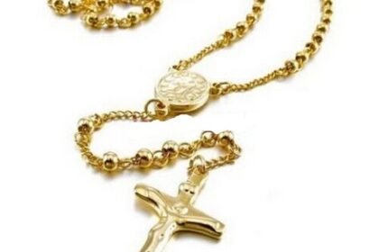 28”+5” Gold Stainless steel 6mm Crucifix JESUS Rosary Necklace Daily Deals Price : Ends on :...
