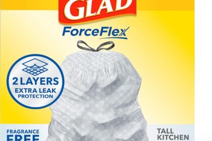 Price: (as of – Details) Glad ForceFlex Fragrance Free Drawstring Tall Kitchen Trash Bags are designed with ForceFlex technology to give extra flex, letting you pack in the trash. Tough and resi...