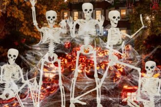 205 Pack Posable Skeleton Halloween Decorations, 16in Halloween Skeleton Decor- Full Body Movable Joints with 22 Spiders & Cobweb, Outdoor/Indoor Scary Party Graveyard Props Hanging SkeletonsNovember 1, 2025