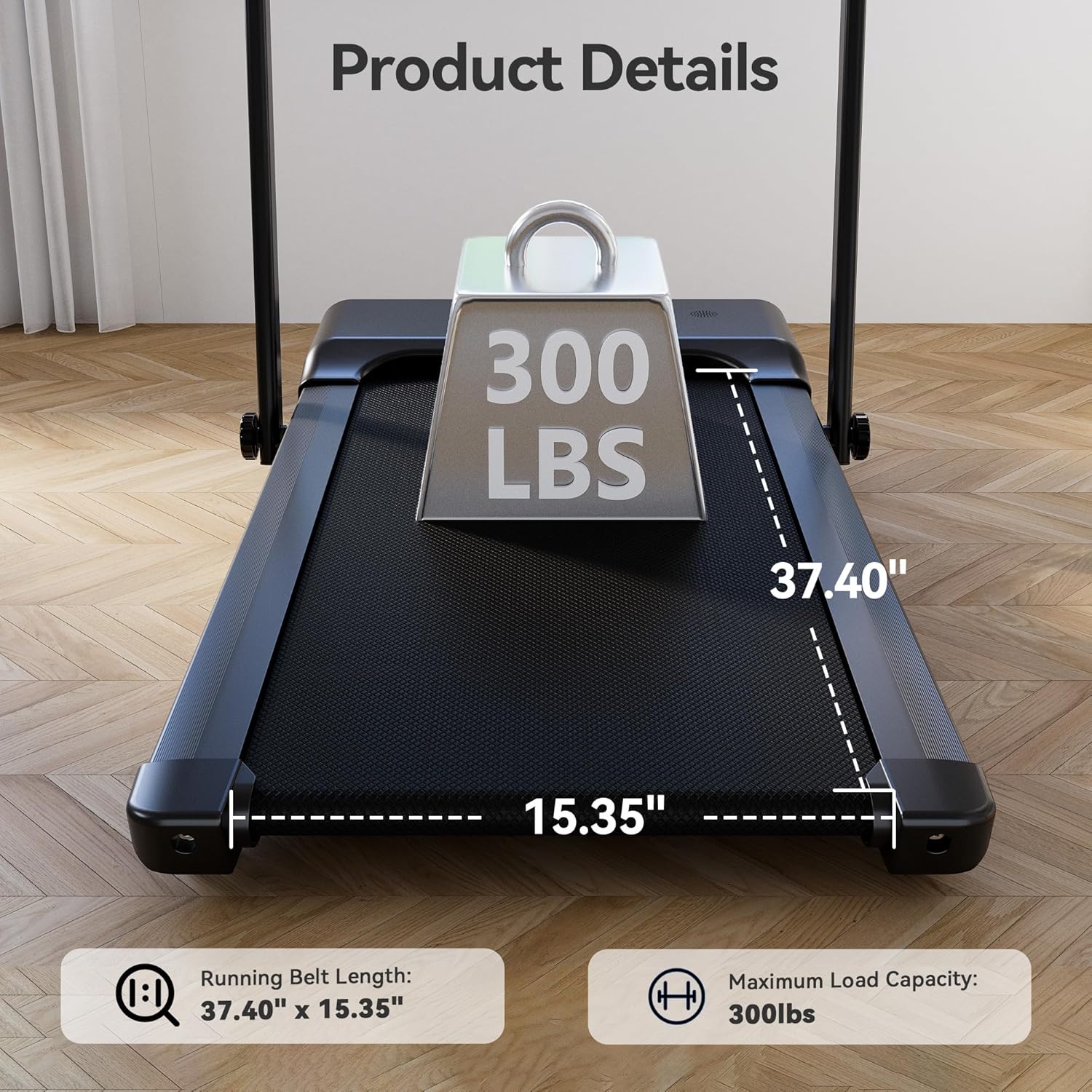 Treadmill 3.0 hp : The under desk walking pad treadmill is equipped with a quiet 3.0HP motor and has a maximum weight capacity of 300 pounds.The quiet motor of this foldable treadmill operate lower 55 dB and a maximum speed of 7.5mph , you don’t have to worry about disturbing others while exercising