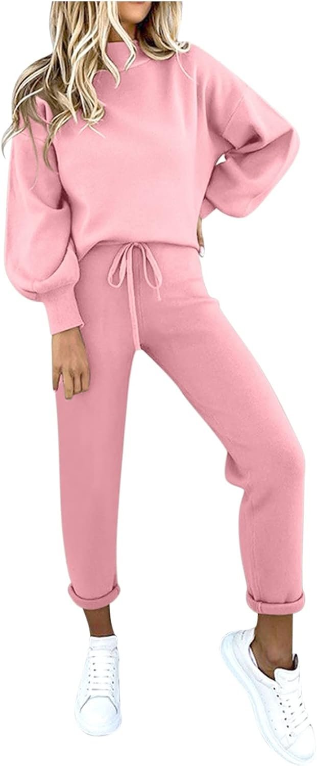 Womens Sweatsuits 2 Piece Set Airport Outfits for Women Crewneck Long Sleeve Sweatshirts Drawstring Pants Tracksuits