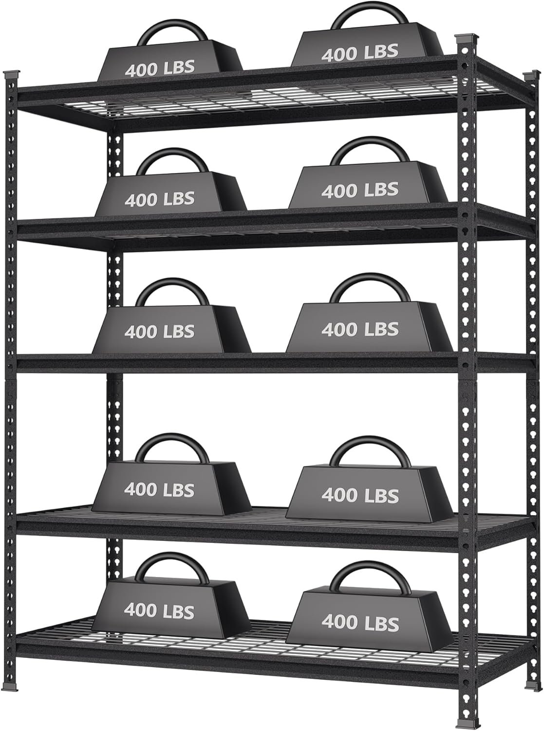 【4000 lbs Load Capacity】 Made of the high-quality metal frame, this shelving unit is more steadily and tough than normal garage shelves. The maximum capacity is up to 4000 lbs totally, 800 lbs per shelf, which can store much more stuff and tools in your garage or warehouse.