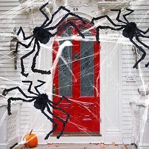 Giant Halloween Spider: These 4 pack furry spiders are 60″, 36″ and 2pcs 24″ in full length, featuring a black body with beady red eyes and wire legs you can bend and pose. It will definitely give your home a spook factor